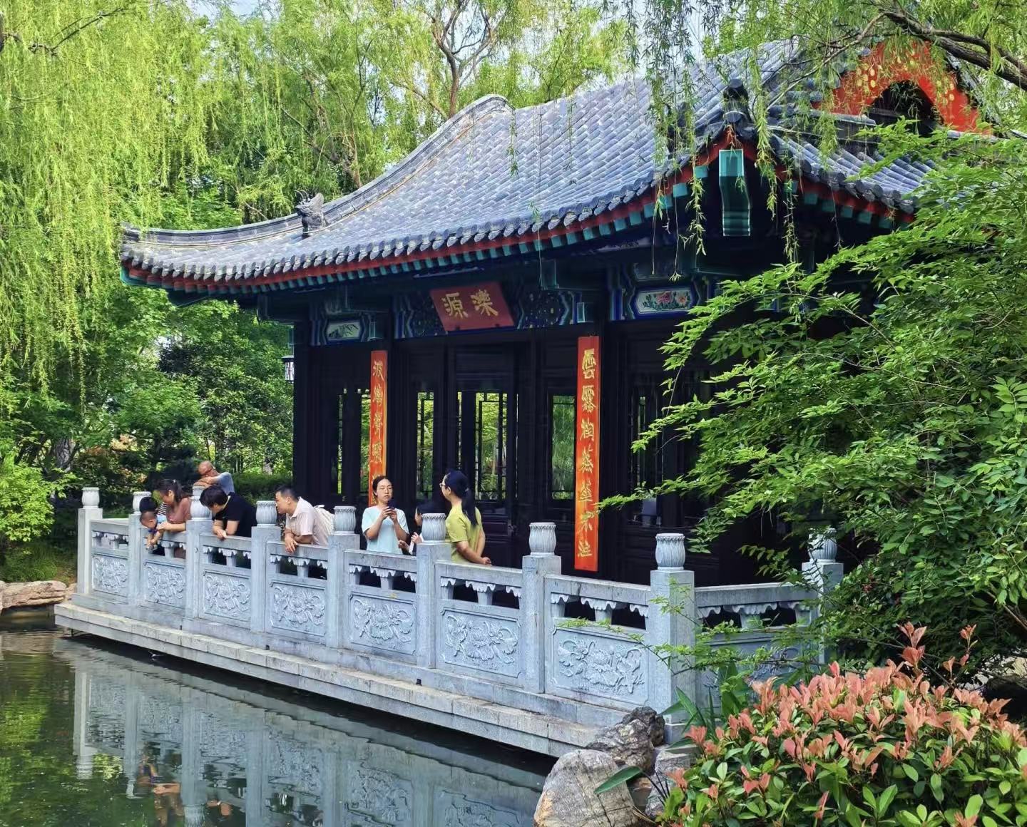“每个展园都有特色,周末带孩子挨个逛,就像逛遍了大半个中国。”在济南园给孩子拍照的张先生说,他几乎每个月都会带家人来一次,“不同季节有不同的风景,永远不会腻”。园内38个城市展园串联起多元文化风景。