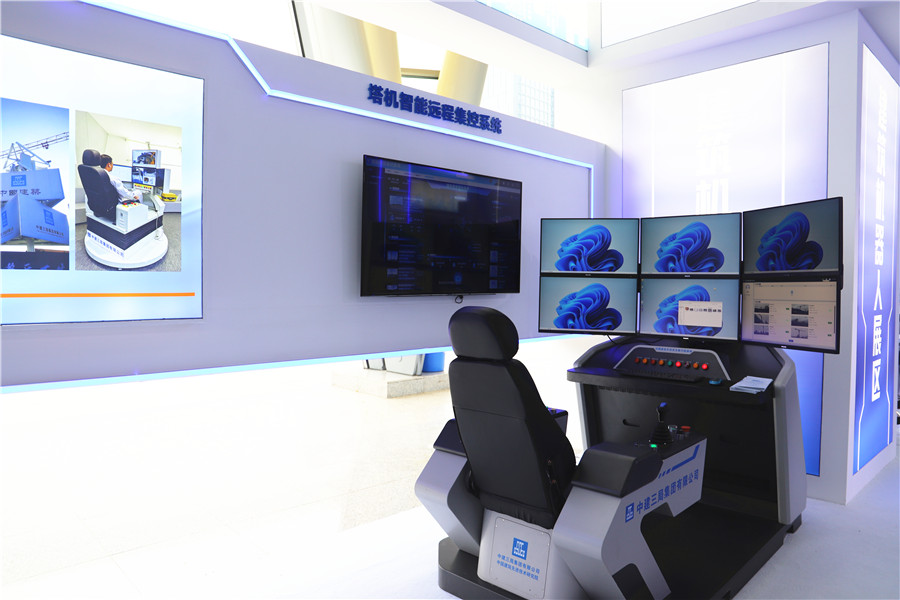 而与古建筑工技术技能展区形成鲜明对比的是建筑机器人技术技能展区,过去与未来在此交汇。展区内展示了一些新型建筑机器人,其中,上肢外骨骼机器人可以为工人提供20千克推举助力、划线机器人能将CAD或BIM图纸上的关键信息精准打印到地面上、塔机智能远程集控系统让人机协同吊装效率提高30%……功能多种多样。展区聚焦“人机协同”,展示了建筑机器人在“危、繁、脏、重”建筑施工、管道巡检等应用场景中所能够发挥的作用。