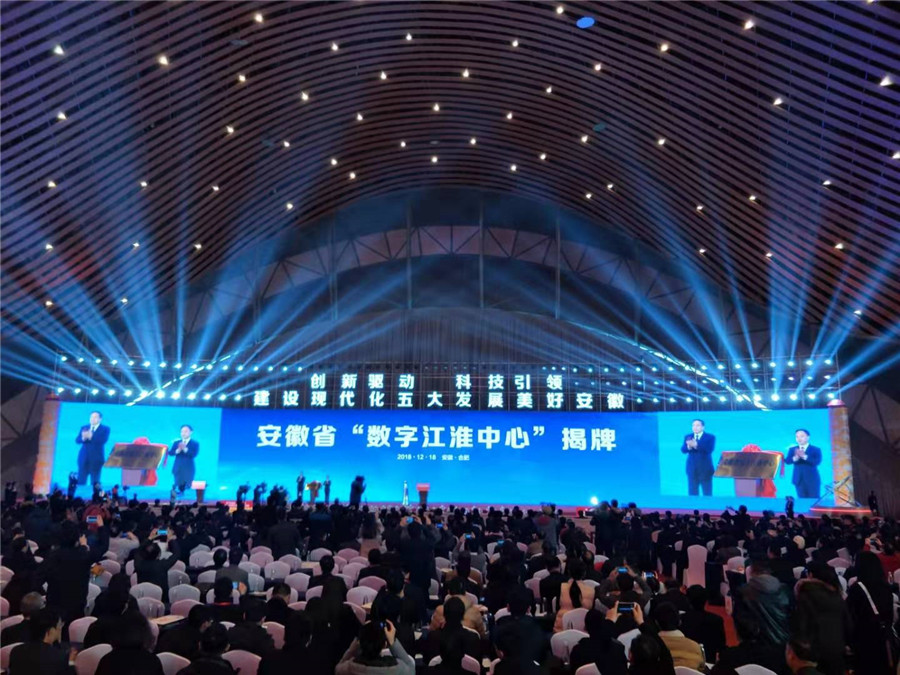本网讯(记者 史洪芳)12月18日上午,安徽省庆祝改革开放40周年科技创新成果展在合肥滨湖国际会展中心拉开帷幕。安徽省委书记、省人大常委会主任李锦斌作重要讲话并宣布成果展开幕。省委副书记、省长李国英主持开幕式。开幕式上,省委书记李锦斌,省委副书记、省长李国英为安徽省“数字江淮中心”揭牌。省委常委、合肥市委书记宋国权致辞。