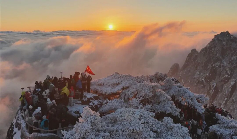 这个元旦假期,安徽各地活动丰富多彩,人们在喜庆祥和的氛围中,共赏徽风皖韵,乐享假日生活。 元旦期间,黄山风景区和九华山风景区雪后初霁,皑皑白雪、磅礴云海与金色日出同框亮相,让慕名而来的游客沉浸式感受冬日限定浪漫。非遗“轩...