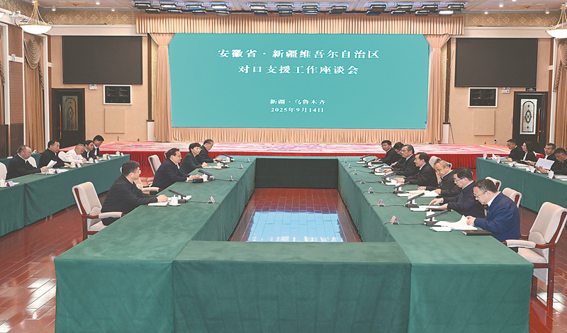 九月十四日下午,安徽·新疆对口支援工作座谈会在乌鲁木齐召开。记者 杨竹 摄 (宗禾 李浩)9月13日至14日,省委书记梁言顺率安徽省党政代表团赴新疆维吾尔自治区考察,深入学习贯彻习近平总书记关于新疆工作的重要讲话重要指示精神...