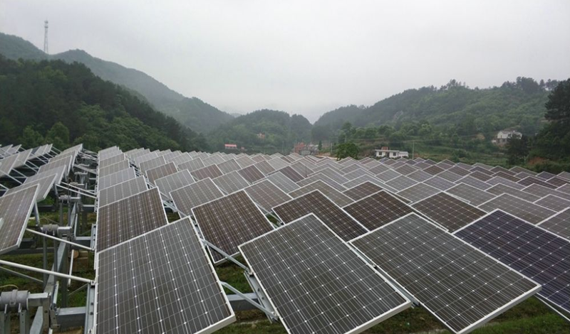 花石乡下辖6个行政村,158个村民组,4133户16389人,有4个村为贫困村,截至2017年底,建档立卡贫困人口468户898人,贫困发生率5.47%。图为花石乡大湾村农光互补扶贫电站。