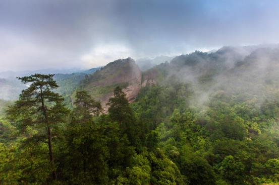松树奇特、植被茂密是万佛山的另一特色。山中奇松多,与黄山诸奇松丽质相同,有的品味极高。如“二仙迎客松”长臂轻舒、热情奔放;“盘龙松”游龙凌空、虬劲刚毅;“卧龙松”屈曲有致、蓄势待发;“华盖松”峨冠翠盖、威严气派;“天门松”顶天立地、巍然雄踞;“依仗松”英武矫健、威风凛凛;“荷叶松”亭亭玉立、风姿卓约;“栲栳松”铮铮铁骨、历尽沧桑。这些奇松均生长于海拔1000米以上的峰之巅、壑之旁、绝壁峭石之间,极富个性,内含气质,令人流连往返。入空山深林,走九龙栈道,环顾山林翠绿,鸣蝉不歇。这里不时会遇见珍稀树种黄连木、鹅掌楸、银鹊树、黄山花楸、豹皮樟、山拐枣等,且树龄大都有百余年,树皮苔衣泛铅白色,尽显岁月沧桑。因处于北亚热带,万佛山森林覆盖率高达95%,负氧离子含量高,适宜盛夏避暑。优良的生态环境孕育了丰富的动植物资源,有25种国家保护植物,10余种国家保护的香獐、金钱豹、娃娃鱼等动物,构成了一个天然的动植物园。在徐大坪瀑布与咚咚岭之间峭壁上,生有两棵紧倚的松树,松枝斜欹,仙风道骨,它们与黄山松属同种,树龄约250年,树冠多为扁平状。两松如姐妹、如情侣,立悬崖之上,欢迎游客到来。因两古松酷似黄山迎客松,因而得名“二仙迎客松”。过了“咚咚岭”,有一段栈道建于悬崖之上,那就是“关刀口”,行于其上,险况环生,过了这段险路,便有一棵蟠龙老松立于山崖。这棵约260年的老松曾遭雷击虫蛀,树干纵向裂开,仍青葱繁茂,如一顶华盖,吸纳万佛山的云雾,扎根在贫瘠的岩缝中。眺望四周,一路上美景无限,攀独岩峭壁,登丹峰极顶,看野草丰茂,观百花盛开,听松涛阵阵,闻小鸟啼唱,呼吸着带有阵阵樟香味的清新空气,神怡之感,殊为难得,完全忘记了登山时的疲劳。