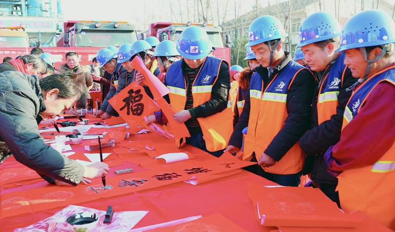 1月22日,合肥市市政工程管理处新港基地施工现场,书法家为农民工书写春联。当日,省图书馆联合合肥市市政工程管理处开展“文化走基层”活动。 本报记者 许昊 本报通讯员 殷俊 摄 省书协的书法家展纸挥墨书写春联,省摄协的摄影家端起...
