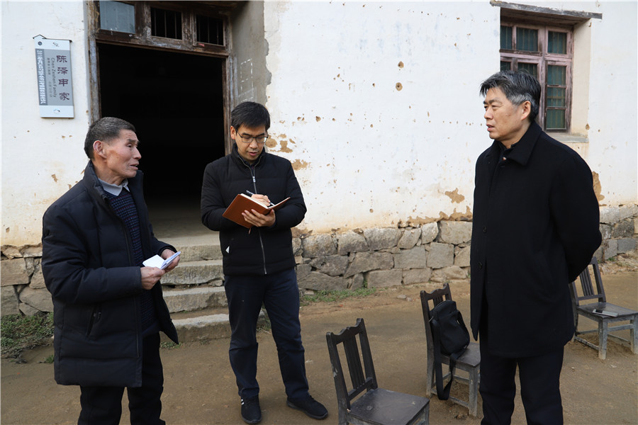 为喜迎全国“两会”胜利召开,探访大湾村的五年巨变,2月1日,《江淮》杂志社总编辑王玉斌带领经济社会部主任强昌洋等一行人深入金寨县大湾村进行采访报道。