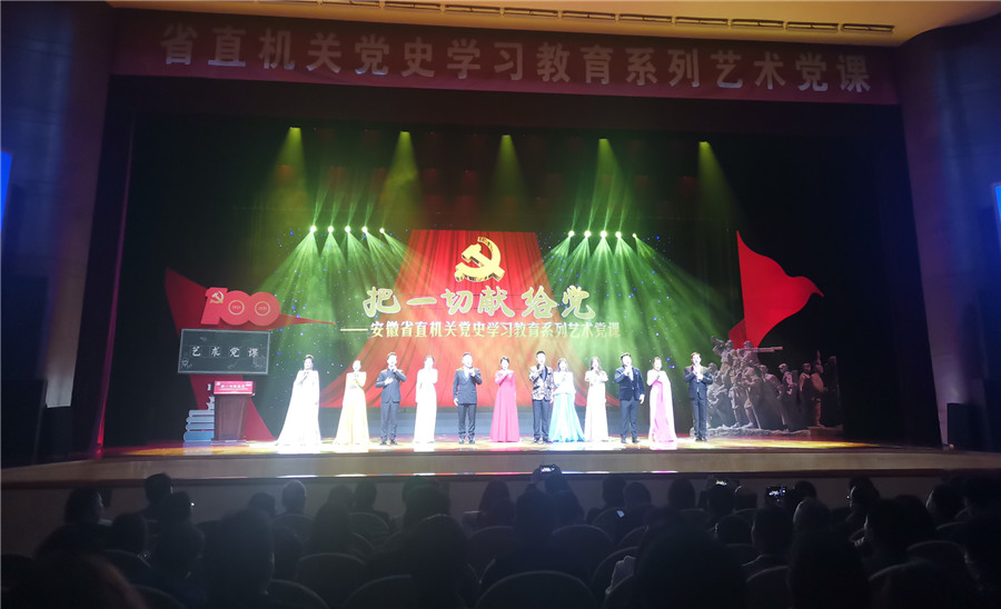 本网讯(记者 史洪芳)4月16日上午,《把一切献给党》——安徽省直机关党史学习教育系列艺术党课主题歌舞演出在安徽大剧院上演。全场坐无虚席,1000余名党员干部职工观看演出。