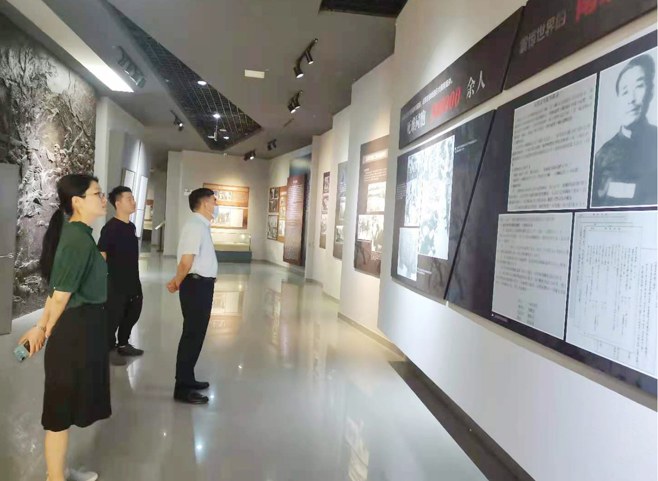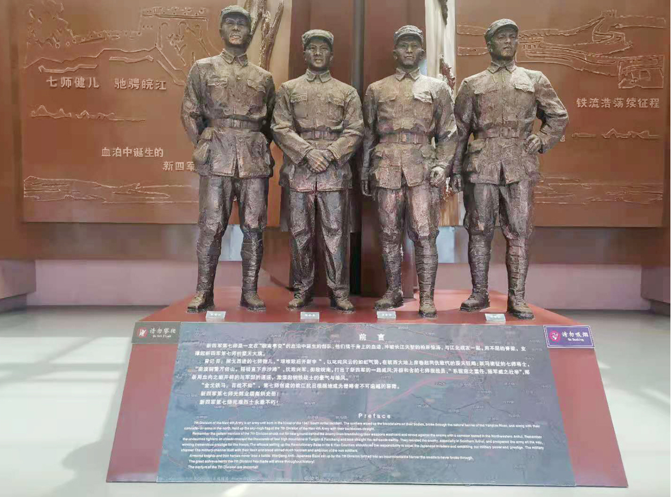 在新四军第七师纪念馆大厅前,首先映入眼帘的是新四军第七师领导人张鼎丞、曾希圣、谭希林、傅秋涛的雕像,他们刚毅的面容透着顽强不屈的革命精神,党员们怀着敬仰之情合影留念。随后党员们参观了“牢记历史勿忘国耻”“皖江抗日起怒潮”“血泊中诞生的新四军”“信念如铁蕴清廉"等八大展厅,展厅里图文并茂的宣传栏、立体的战斗和生产群像、橱窗里的历史物件、战役中的文物等,仿佛让人置身其中,回到了那艰苦峥嵘的岁月……当年在皖南事变的血泊中浴火重生的新四军七师,由小到大、由弱到强,四年多时间里就建立了面积3万多平方公里的皖江抗日根据地。辉煌的战绩、光辉的历程!革命先辈们为了自由为了解放抛头颅、洒热血,出生入死、前赴后继的革命斗争精神,深深震撼着党员们的心。