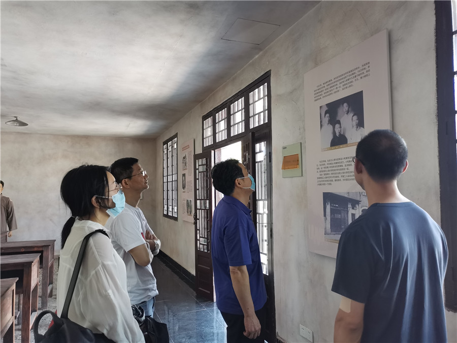大家怀着崇敬的心情走进小甸集特支纪念馆,通过文物、图片、雕塑、视频了解特支成立前后的重大事件。中共寿县小甸集特别支部于1923年成立,是安徽成立最早的中共党组织,为我党早期党组织的创建和发展起到了示范和引领作用。特支书记曹蕴真在《明志诗》中说:“寻求真理狂澜挽,展望神州换新颜。”北伐烈士第一人曹渊、工人运动领袖孙津川、六霍起义指导者方运炽……读着这一个个名字,大家被他们的大无畏精神和无私奉献精神深深震撼。在淮上中学补习社陈列馆内,党员们了解到,为宣传马克思主义、培养革命青年,淮上中学补习社由李坦、曹少修等人于1924年开办,这群热血青年的救国热情深深感染着党员们。