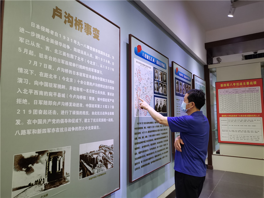 “八年浴血日寇投降,烈士英灵得到慰藉,铁军精神青史留名。”这是新四军纪念林陈列馆《新四军颂》中的一段文字。陈列馆以国歌为序曲、长城为背景、新四军华中抗战为主线,图文并茂,形象生动地讲述新四军抗日斗争的辉煌历史。党员们认真观看革命文物、阅读图文资料,详细了解新四军前仆后继、英勇顽强抗击日本侵略者的悲壮故事。新四军的革命英雄主义和爱国主义精神以及依靠群众、关爱群众的优良作风,让党员们接受了一场精神上的洗礼。